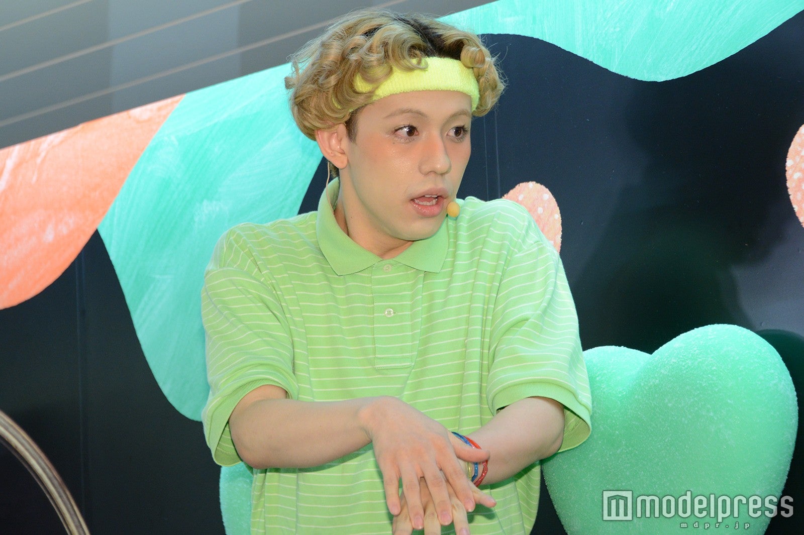 同日より同所には、手を入れると発光したり音がなったりする巨大なグミを模したオブジェが展示。イベントではオブジェを体験するりゅうちぇるの姿を、ペーが撮影した。「やだ~怖い~!最近リアクションを求められることが多くて…こわ~い」と疑心暗鬼で挑戦したりゅうちぇるは、恐る恐る手を入れた後「イヤー!」と悲鳴。MCから「どうしたんですか?」と状況説明を求められると、「なんか、てーじ冷たいのが手にきて、大変なことになってるよ」と思わず沖縄弁が飛び出していた。(modelpress編集部)