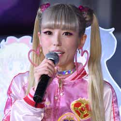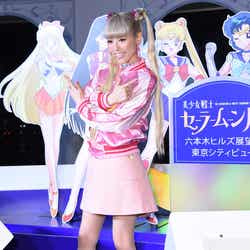 タレントでデザイナーの若槻千夏が15日、都内にて開催された「美少女戦士セーラームーン展」の内覧会に出席。セーラームーンを彷彿とさせる金髪ロングのツインテールでキュートな決めポーズを披露した。