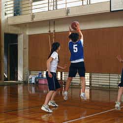今回の撮影現場は、実際の学校の体育館を使用して行われた。数カ月前まで現役の女子高生で、元バスケットボール部員でもあった桜井は、撮影前から慣れた手つきでドリブルするなど、リラックスした様子。撮影の際、監督から指示された7発のゴールをすべて決めるなど、バスケットボールの見事な腕前を披露。また共演者全員がバスケットボール経験者で年が近いこともあり、撮影の合間もバスケットボールの試合をするなど、終始なごやかな雰囲気で撮影は進んだ。