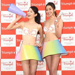 トリンプ・インターナショナル・ジャパンは17日、都内で会見を行い、最新作の「輝き女子ブラ」(非売品)を発表。同社の2016年イメージガールを務める川辺優紀子と中川知香が着用し、お披露目した。