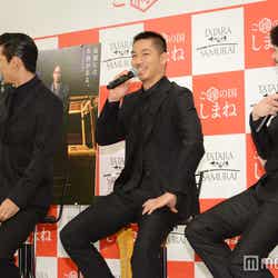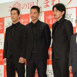 EXILEのAKIRA、小林直己(兼三代目J Soul Brothers from EXILE TRIBE)、劇団EXILEの青柳翔が17日、都内にて行われた『ご縁の国しまね』プレス発表会に溝口善兵衛島根県知事とともに出席。同県の伝統製鋼である「たたら吹き」を題材に、EXILE HIROが初プロデュースする映画『たたら侍』(来春公開予定)にメインキャストとして出演する3人が昨年に引き続きイメージキャラクターを務めることが発表され、今年度のポスタービジュアルが発表された。