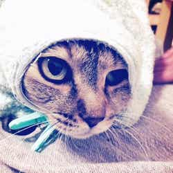 タオルをまいたポーズは、佐藤が主演をつとめる映画『世界から猫が消えたなら』(公開中)に登場する猫「キャベツ」の“キャベツ巻き”を真似たもの。2枚の写真は「家族から送られてきました」といい、本物と比較しながら「こちろーとぷちろーのキャベツ巻き」「ぷちろーぎゅっとなりすぎな」などとコメント。元々、大の猫好きであり「かあいい」とメロメロの様子でつづった。