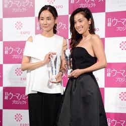 本アワードは、雑誌「日経ヘルス」の過去1年間に表紙やインタビュー記事に登場した女性の中から、読者の理想となる健康的な若さと美しさを備え、仕事においても活躍目覚ましい方を表彰するもの。過去2回では観月ありさ、永作博美が受賞しており、第3回目の今回は、新たに女優賞とヘルシーモデル賞が創設され、中村アンも登壇した。このほか、女優・黒木瞳が初メガホンを執り、木村佳乃とW主演する映画『嫌な女』(6月25日公開)での撮影エピソードを披露。MCから「嫌な女からほど遠い」と言われた吉田は「騙されてる!」とおどけつつ、「何をもって嫌な女とするかは観て考えてください」とアピール。現場では、「瞳さんが誰よりも綺麗でした。メイキングカメラがついているのもあって、『わたし今日ボロボロよ』と言ってるんですけど全然ボロボロじゃないんですよ」と先輩女優の美しさに舌を巻いていた。(modelpress編集部)