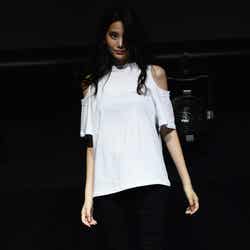 ファッションショー最初の「rienda(リエンダ)」ステージでトップバッターを飾った瑛茉は、シャツワンピのボトムのボタンを全開にし、中からショートパンツをチラ見せしたセクシーな着こなしで登場。ランウェイ途中で投げキスを飛ばすなど、キュートな仕草に、会場からは大歓声が起こりファッションステージの開幕を盛大に盛り上げた。なつぅみは、オフショルTシャツにスカーチョを合わせたゆったりとしたスタイリング。ピンクのネイルとトレンドのチョーカーをアクセントにした今年っぽい着こなしで、笑顔いっぱいに「なつぅみー!」の歓声に応えていた。