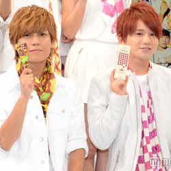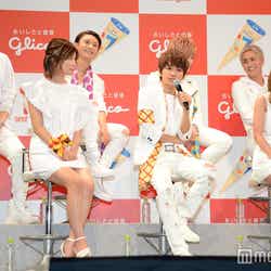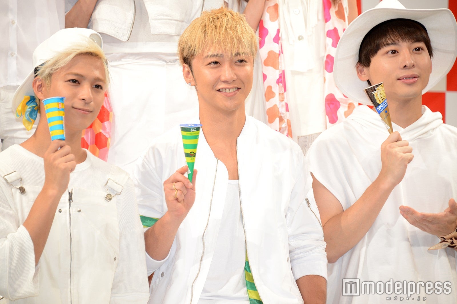 30日、都内で製菓のキャンペーン記者会見が行われ、昨年に引き続き起用されたAAAのほか、今年はDa-iCE、TRFもそろって出席。デビュー前からDa-iCEの岩岡徹と友人だったという、AAAの日高光啓は「17歳の頃、夏休みで遊んだりしていて、ゲームセンターのクレーンゲームで取ったおそろいのストラップをつけたりしていましたね(笑)」と学生時代を回顧。仲良しすぎるエピソードに、会場からは温かな笑いに包まれた。
