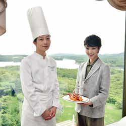 今回、16日に放送される「朝だ!生です旅サラダ」(あさ8:00~/同局)の企画の一貫として伊勢志摩を訪れた剛力は、、樋口シェフとの対面を「もっと強そうな人というイメージを勝手に抱いていたのですが、実際にお会いしたらとても柔らかくて包み込んでくれそうな方でした」と回顧。シェフ役に挑戦するということもあり、役作りのために聞きたいことも多かったようで、「料理をするときの心構えは?」や「料理にどんな思いを込めているのですか?」など、興味津々で話を聞いていた。そんな剛力の問いひとつひとつに、丁寧に答えてくれる樋口シェフは、「常に料理を出すお客様のことを考え、『美味しく食べてもらえるといいな』と思いながら作ります」と料理人として大切な心構えを伝授。「料理がうまくなるコツは?」という問いには、「料理が好きという気持ちを持ち続けること。そして作ってあげる人のことを思い浮かべながら『こんなものを作ってあげたいな』と思う気持ちが大事なのではないかと思います」と女性シェフならではの、細やかな心遣いも打ち明けた。