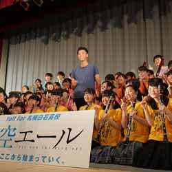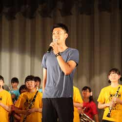 最後には、演奏を披露した吹奏楽部とのフォトセッション。吹奏楽部の決めポーズで記念撮影を実施した。また、生徒達の撮影もOKとなり、通常禁止されている携帯電話での撮影会がスタート。「こっち向いて~」という声にも快く応じていく竹内。感動のあまり泣き出す生徒も出るほど、終始、熱狂と興奮で盛り上がったイベントとなった。(modelpress編集部)