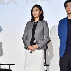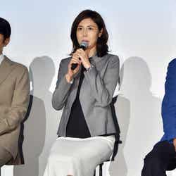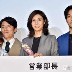 女優の松嶋菜々子が14日、都内で行われた主演ドラマ「営業部長 吉良奈津子」(フジテレビ系毎週木曜よる10時~、7月21日スタート※初回15分拡大)の完成披露試写会・舞台挨拶に共演の松田龍平、DAIGO、伊藤歩、板尾創路、石丸幹二、原田泰造、高橋幸之助と登壇。原田と夫婦役を演じる松嶋は、撮影時のエピソードを求められると、出会いのシーンを振り返った。