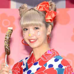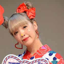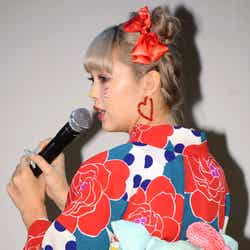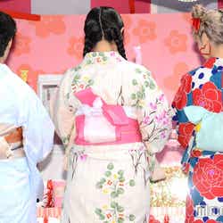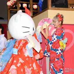 双子のキャラクター・キキとララのキキをイメージした浴衣については、「水色は初めて着たんですけど、夏っぽく爽やかでめちゃめちゃ可愛いんですよ。後ろを向いたら、(帯に)一番好きなポムポムプリンちゃんがいるんです」と嬉しそうに紹介した。