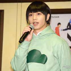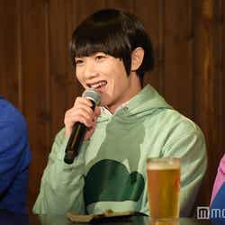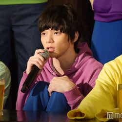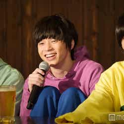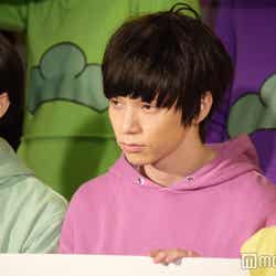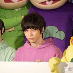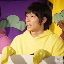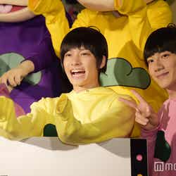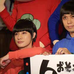 28日、都内で『おそ松さん on STAGE~SIX MEN’S SHOW TIME~』の制作発表記者会見が行われ、6つ子を演じる高崎翔太(おそ松)、柏木佑介(カラ松)、植田圭輔(チョロ松)、北村諒(一松)、小澤廉(十四松)、赤澤遼太郎(トド松)が出席。社会現象にもなった作品の舞台化とあって報道陣が殺到し、キャスト陣が口々にプレッシャーと意気込みを語るなか、一松役の北村は「何よりもヤケドを恐れずに攻めて行きたい。攻めないと面白くない」と断言。他キャストから「お~!」と歓声を受けた勢いで「僕の舞台上での目標はウ○コをすることです。見どころは僕のケツです」と大胆宣言したものの、「目泳いでるよ」「(記事の)見出しがすごいことになる」とつっこまれるとすかさず「じゃあおしりを出す程度にしといてください」と“前言撤回”し笑いを誘った。