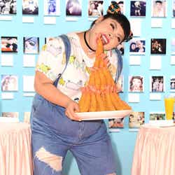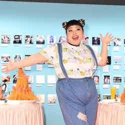 お笑いタレントの渡辺直美が30日、ラフォーレミュージアム原宿にて開催している「渡辺直美展 Naomi's Party」(8月6日まで)のメディア内覧会に出席した。会場が原宿ということもあり、「ライバルになるのは、きゃりーぱみゅぱみゅ?」との質問が飛ぶと、「きゃりーちゃんは本当に凄いカリスマ性もあって、かわいくて、皆から愛されて」と絶賛。「過去に、同じような『きゃりーぱみゅぱみゅ展』をやったのですって。3万人来たらしいです。凄い数ですよ」と脱帽の様子を見せたが、「私は5万人を目指します。1週間で5万人!『絶対、無理!』なんて言わないで(笑)」と笑いを誘いながらも宣言し、「きゃりーちゃんの記録は超えたいなと思います」と意気込んでいた。