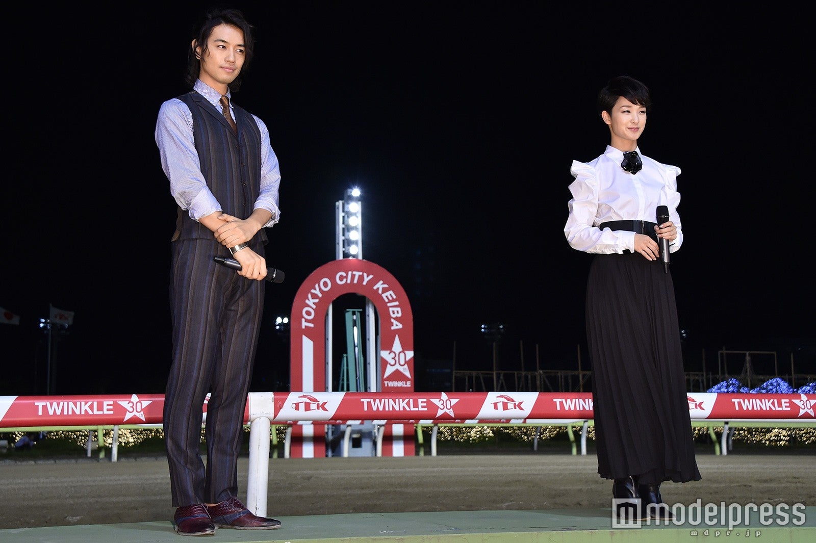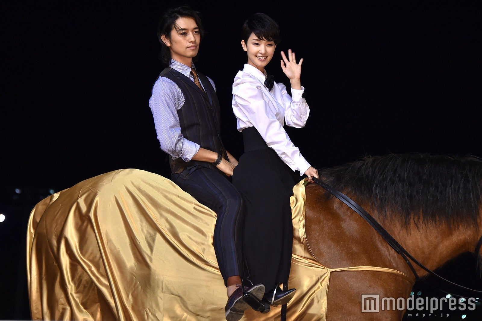 女優の剛力彩芽と俳優の斎藤工が31日、東京・大井競馬場で行われたイベントに登場。この日、同じ馬に乗ってイベントに登場した2人は、「必死に捕まっていましたけど、馬が嫌がらずに、馬の気性にも助けられました」(斎藤)、「直接乗って、しかも2人で乗るというのも初めてだったので、最初はドキドキしていたんですけど、いい子でしたね」(剛力)と共に安堵の表情。報道陣からだいぶ密着していたことを指摘されたため、斎藤は「あそこに隙間があると、基本的に危ないですし(笑)」と説明したうえで、「でも、ああいう感じでこれからスタジオとか現場に入って行きたいですね」と笑いを誘った。