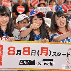 4日、東京・六本木ヒルズアリーナにて夏の高校野球選手権大会開幕直前スペシャルイベントが行われ、8日より放送されるABC・テレビ朝日共同制作のダイジェスト番組「熱闘甲子園」(月~金曜よる11:20~11:50、土曜よる11:15~11:45、日曜よる11:45~0:15 ※一部変更・休止の場合あり)のテーマソングを担当するAKB48“高校野球選抜メンバー”の横山由依、北原里英(NGT48)、高柳明音(SKE48)が出席。イベント中、大粒の涙を流しながら昨年行われた甲子園のダイジェストを観ていた北原は「素敵。本当にドラマみたいですよね…。『事実は小説よりも奇なり』って言葉は、甲子園のためにあると思ってます」と涙を拭い、横山も「絆を感じる」、高柳も「映画化した方がいいと思う!」とそれぞれ胸を打たれていた。