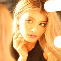 白のローブをまとい鏡の前に座るローラ。メイクアップアーティストの手により、ネイル、アイシャドウ、アイライン、マスカラが塗られていき、鏡の中の自分に満足した視線を投げかける。その後、ブラックの大人っぽいワンピースを選んで撮影がスタート。意思的な目、風になびく髪などで美貌をさらに輝かせたローラが、スタイリッシュで大人レディな世界観を表現している。(modelpress編集部)