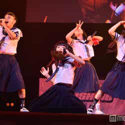 ファッションステージのトップに登場したのは、初代・日本一かわいい女子高生の“りこぴん”こと永井理子。ハッピースマイルでランウェイを歩くと、めいめろ&ほのちぃは双子コーデで手つなぎランウェイ。仲睦まじげに歩き、観客を魅了した。そしてちぃぽぽ。投げキス&美脚披露で観客を虜にし、会場は「可愛い!」の大歓声が響いた。