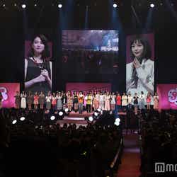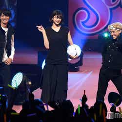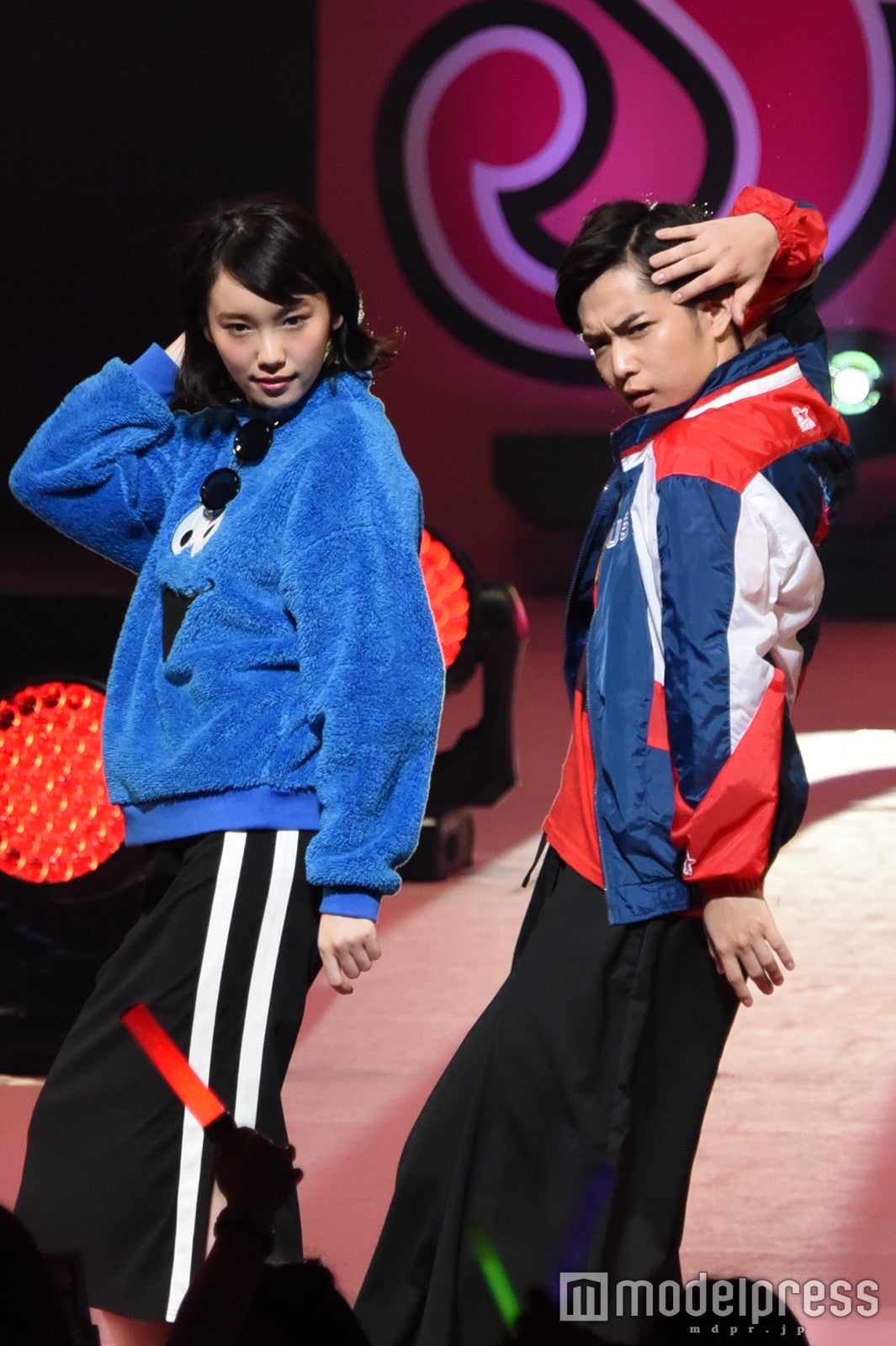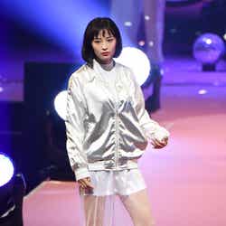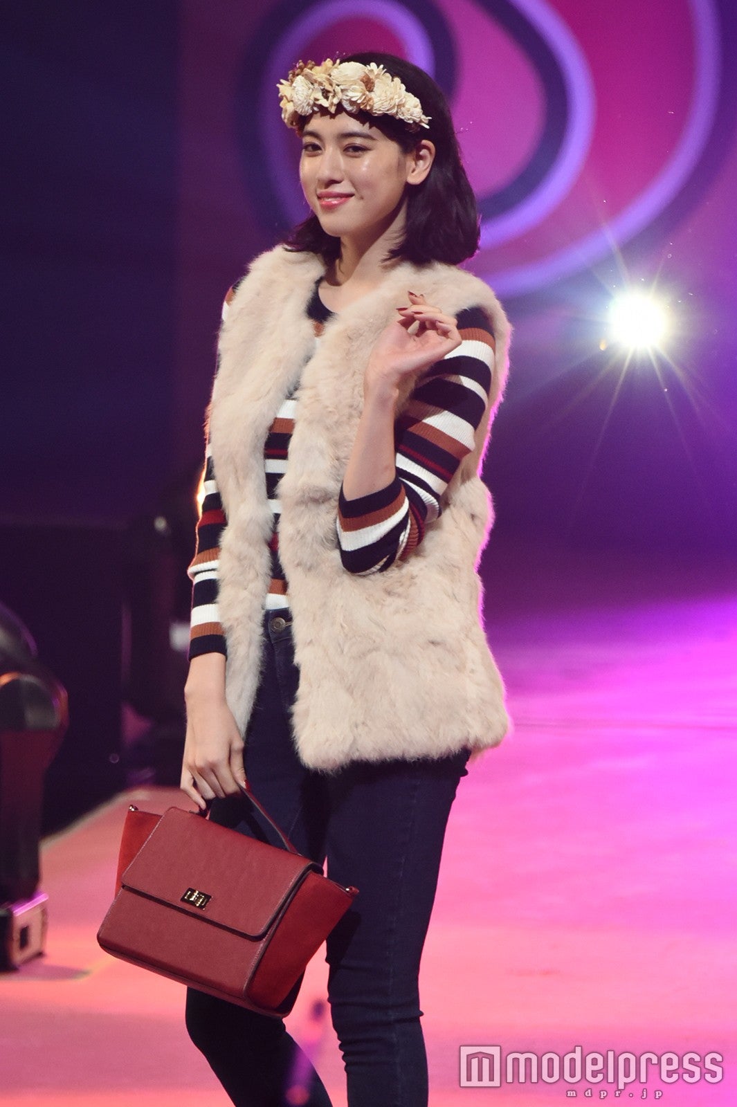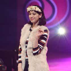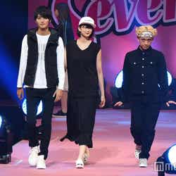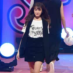 ランウェイのトップバッターを飾ったのは広瀬。中央に立つ広瀬の姿がビジョンに映し出されると、会場からは割れんばかりの大歓声が沸き起こった。広瀬はクールな眼差しでランウェイを歩き、観客を魅了した。ほか、三吉と江野沢愛美の“みよまな”コンビは互いに美脚をあらわにしたミニ丈のブラックコーディネートで、BGMに合わせてダンスパフォーマンスも披露した。