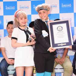 タレントのりゅうちぇるが26日、都内にて開催された脱毛サロンの一日店長イベントに、原宿系人気読者モデルの“ぺこちゃん”ことオクヒラテツコと出席。ギネス世界記録に認定された。
