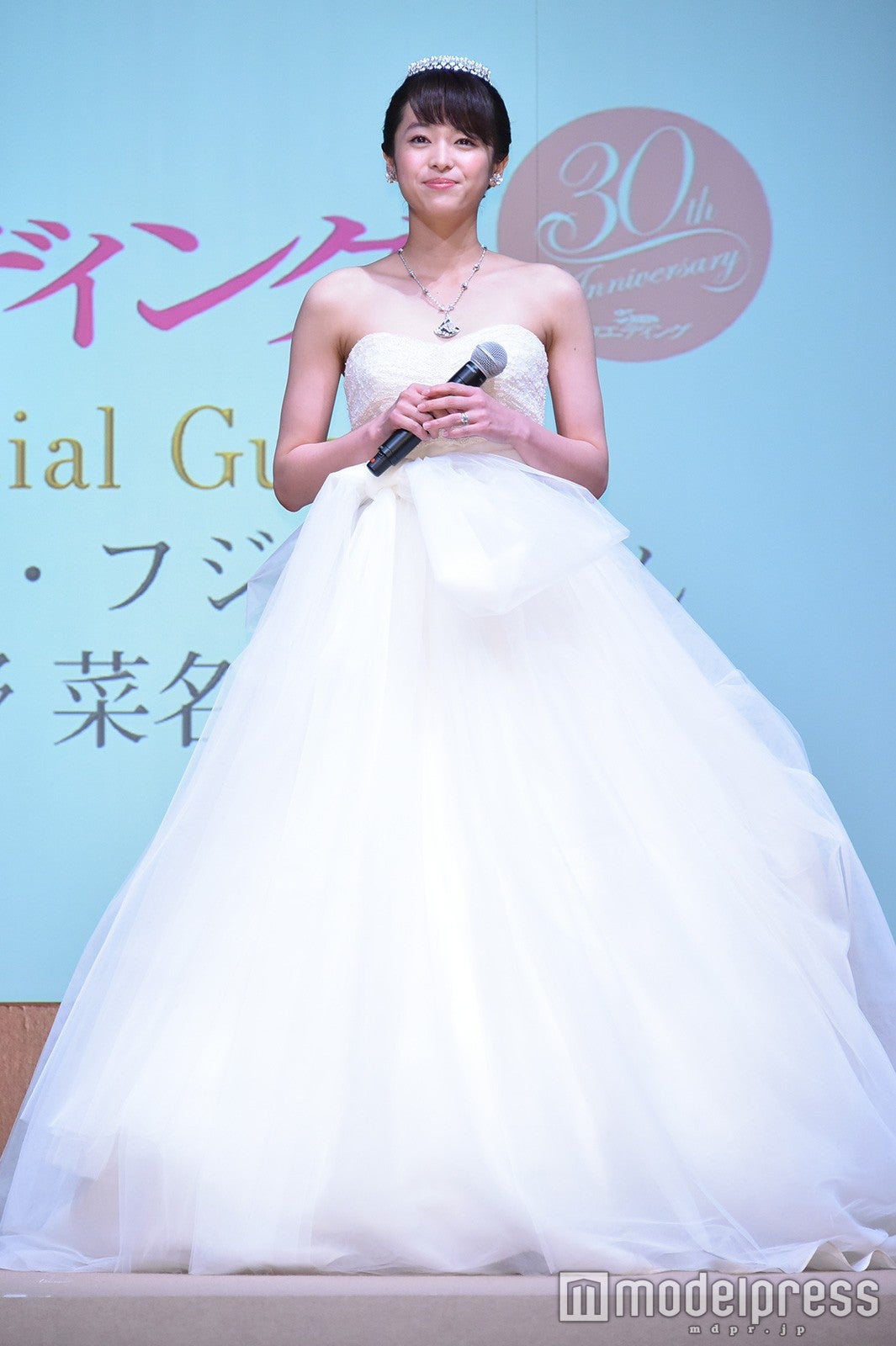 清野は、「こんな素敵なものを着けているので緊張。ドキドキしちゃう」と疑似花嫁姿に照れながら、「ウエディングドレスを着るとウキウキして自然と笑顔になる」とニッコリ。そんな清野に、新郎役としてエスコートしたディーンは「素敵」と惚れ惚れし、「清野さんが持っている良さが引き出されたコーディネート」と美貌に賛辞を送っていた。