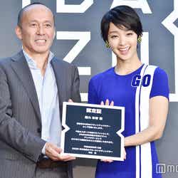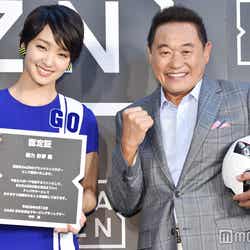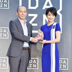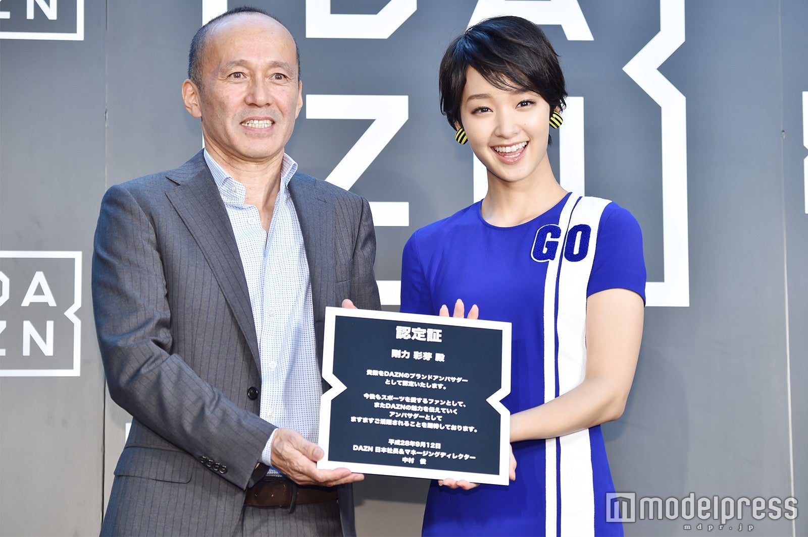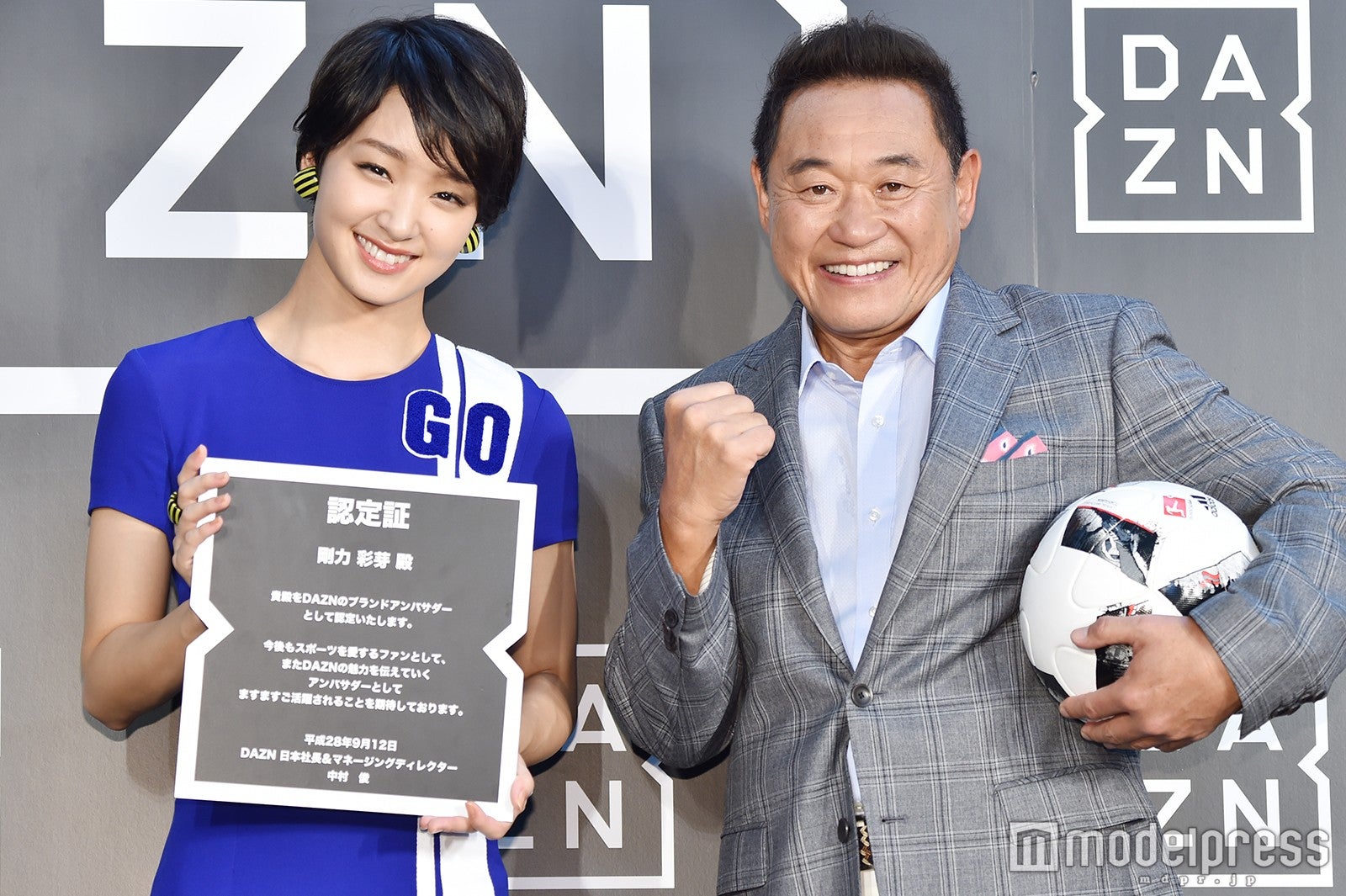 女優の剛力彩芽が12日、都内で行われたライブストリーミングサービスのお披露目式に、サッカー解説者の松木安太郎氏とともに出席した。