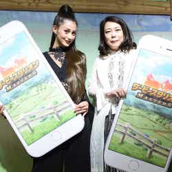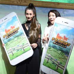 モデルでタレントのダレノガレ明美が15日、千葉・幕張メッセにて開催された展示会「東京ゲームショウ2016」の競走馬ゲームお披露目イベントに、お笑いタレントの椿鬼奴と出演した。
