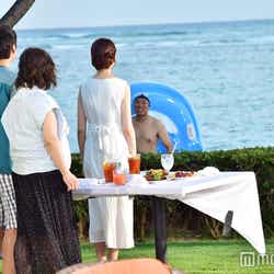 一方、途中から参加となった健太郎は、「初めて現場に行ったときに知ってる人もいないし、どうしようかなと思っていたら、意外と山里さんがすっごい優しく接してくれた」と現場でのエピソードを披露。思わぬタイミングで素顔を明かされた山里だったが、視聴者から「山ちゃん海に帰って」とメッセージが寄せられ、1人退散することに。番組冒頭、1人だけ海パン姿で海から登場した山里は、そのまま海パン姿で「バイバーイ!」と場を去り、ハワイでもいつものスタジオと変わらない扱いを受けていた。