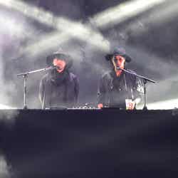 歌手の赤西仁と俳優の山田孝之によるユニット「JINTAKA」は、デビュー・シングル「Choo Choo SHITAIN」をライブパフォーマンス。クリーンに「JINTAKA」の文字が表示されると観客は飛び跳ねて大喜び。ステージ後方のDJブースから2人が姿を現すと一気に会場のボルテージは最高潮に達した。ステージにセクシーな女性が続々と登場し歩き回り、会場の盛り上がりはさらにヒートアップ。そして、2人がランウェイを歩き出すと、ガラスのボードが先端に現れ、女性たちが次々とキスマークをつけていく。最後は2人が急接近し見つめ合い、大熱狂の中、パフォーマンスは終了した。