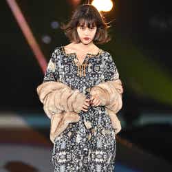 「Bershka」ステージに登場した桜田は、ポンチョコートが目を引くブラックコーデに身を包み登場。アクセントとなったオレンジのニット帽でキュートな魅力も放ちつつ、クールな眼差しでランウェイ。会場からは黄色い歓声が上がっていた。中村アン、かきあげヘアなびかせ大人なランウェイ ファーコーデで冬先取り!