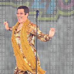 お馴染みのイントロがかかると、観客は大興奮。金色のアニマル柄のシャツにサングラスをかけた怪しいいでたちのピコ太郎がステージにサプライズ登場すると、大きな歓声が上がった。「今日は皆さんと一緒にPPAPをやりに来ました!ご存じの方いらっしゃいますか?」という声に「はーい!」と盛り上がる会場。ゆるい踊りと中毒性のあるリズムの「ペンパイナッポーアッポーペン」をあっという間に歌いきった。7日に、全世界134カ国で配信開始した同曲。ピコ太郎は「某サイトではピコ太郎の一個上がジャスティン・ビーバーでした。世の中おかしいです」と反響を報告。