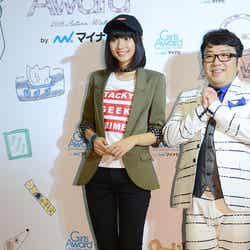 モデルで女優の武田玲奈が8日、東京・国立代々木競技場第一体育館で開催されたファッション&音楽イベント「GirlsAward 2016 AUTUMN/WINTER」に出演。お笑い芸人の「キャイ~ン」らとキュートな“キャイ~ン”のポーズを披露した。