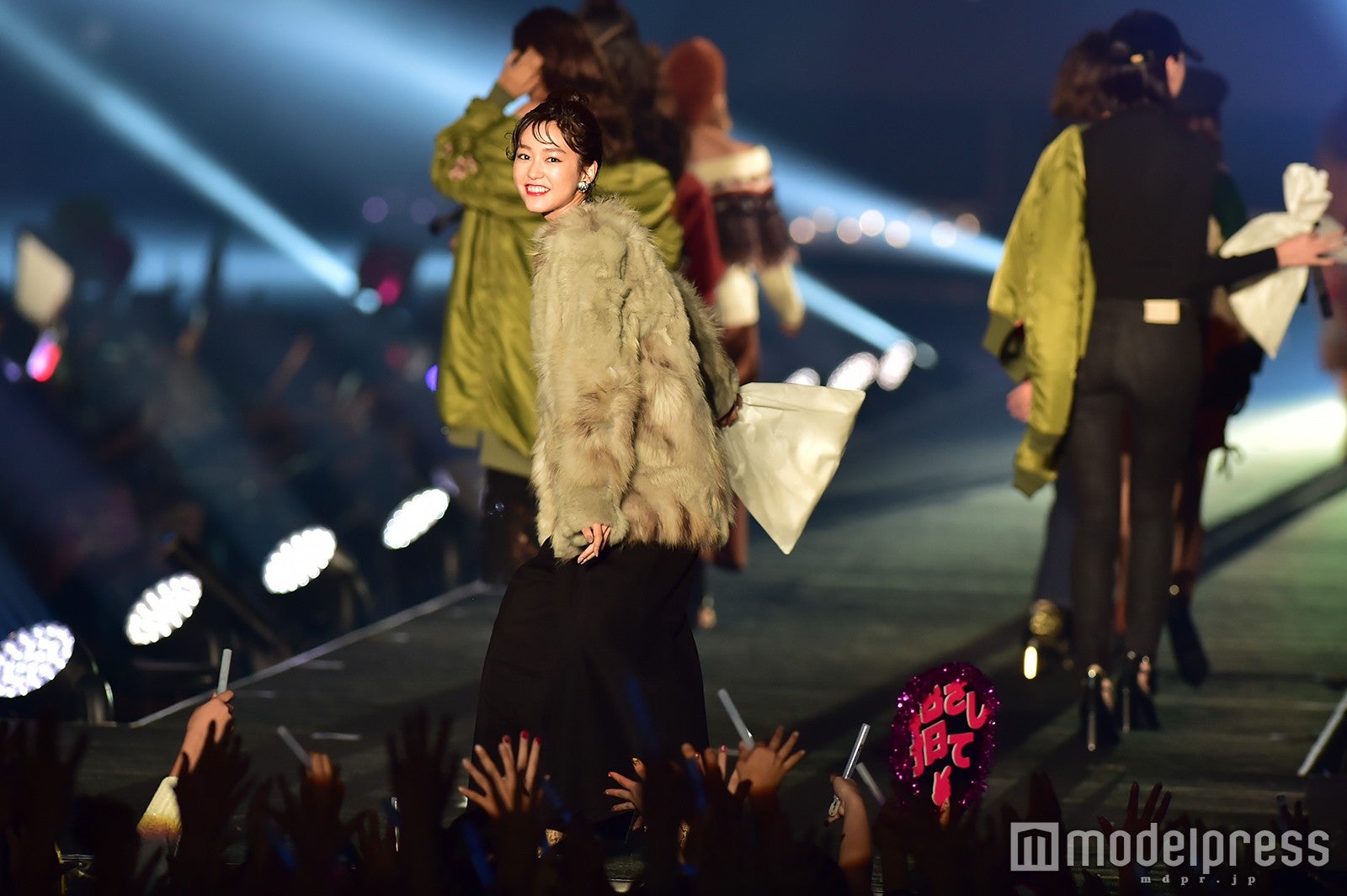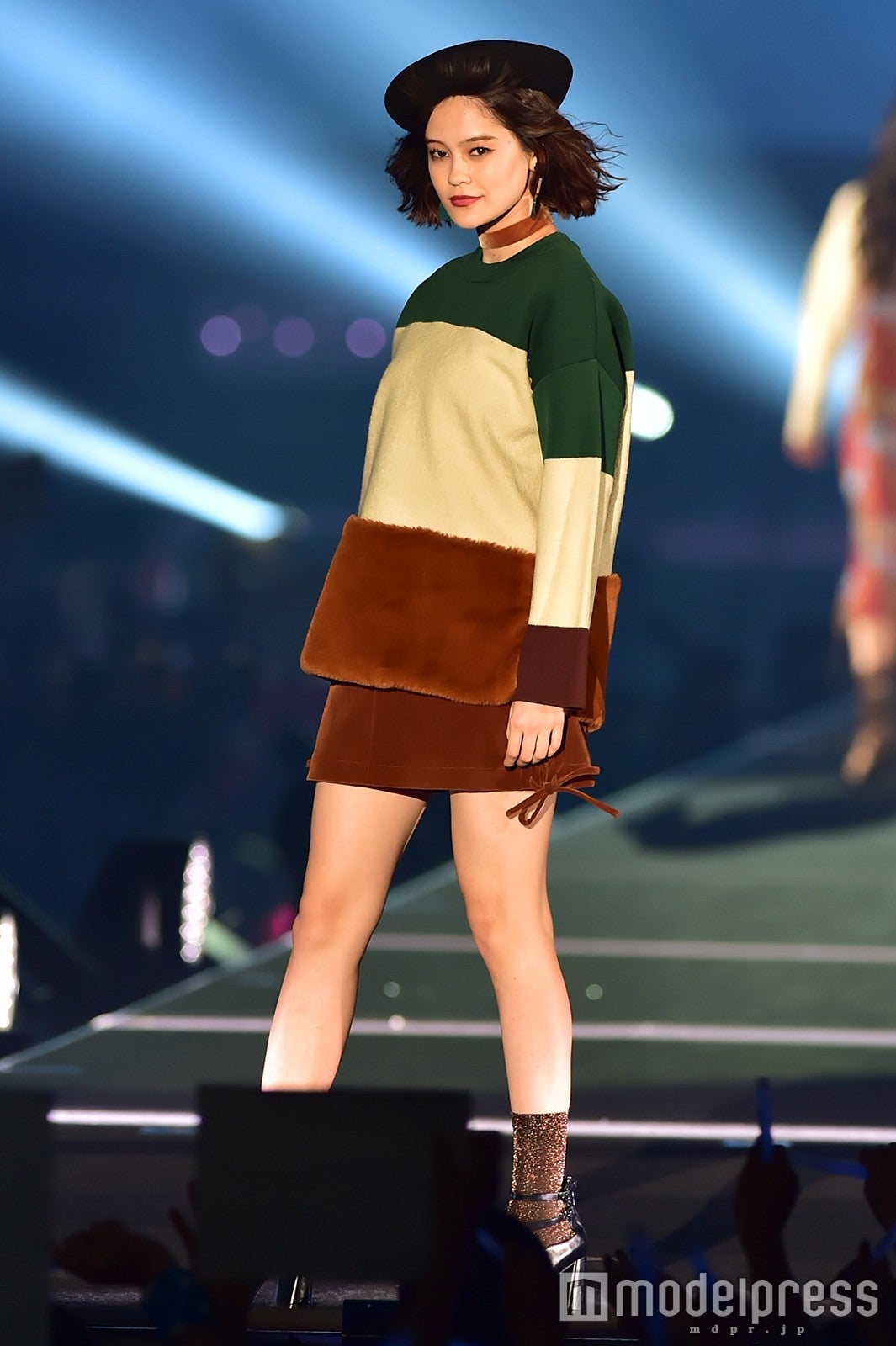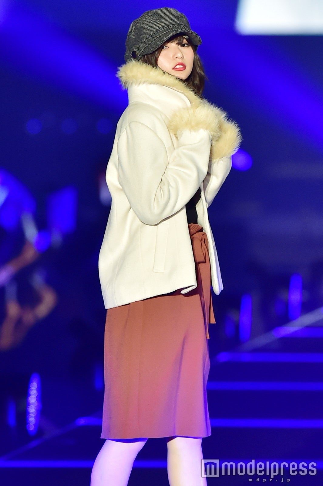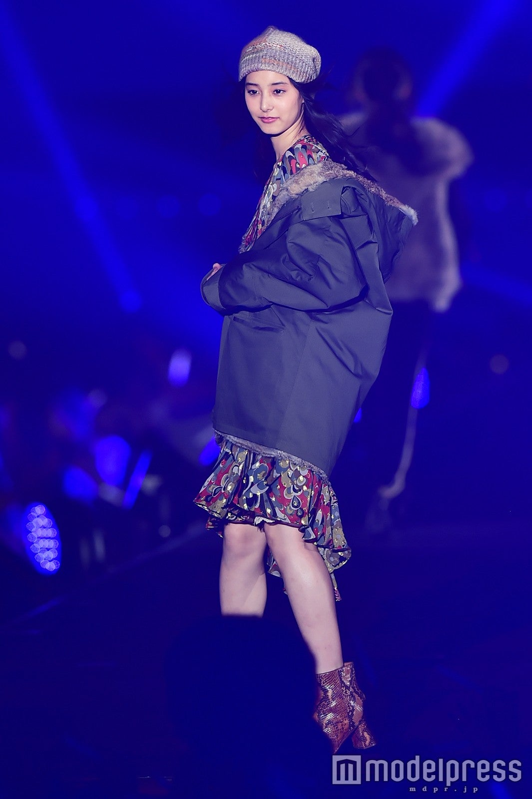 「salire」ステージのトリをつとめた新川優愛は、ミニワンピースにファーが施されたモコモコのコートを着こなし。大人可愛いフェミニンスタイルで、笑顔でランウェイを闊歩し、観客を虜にした。大政絢、スレンダー美脚に視線集中