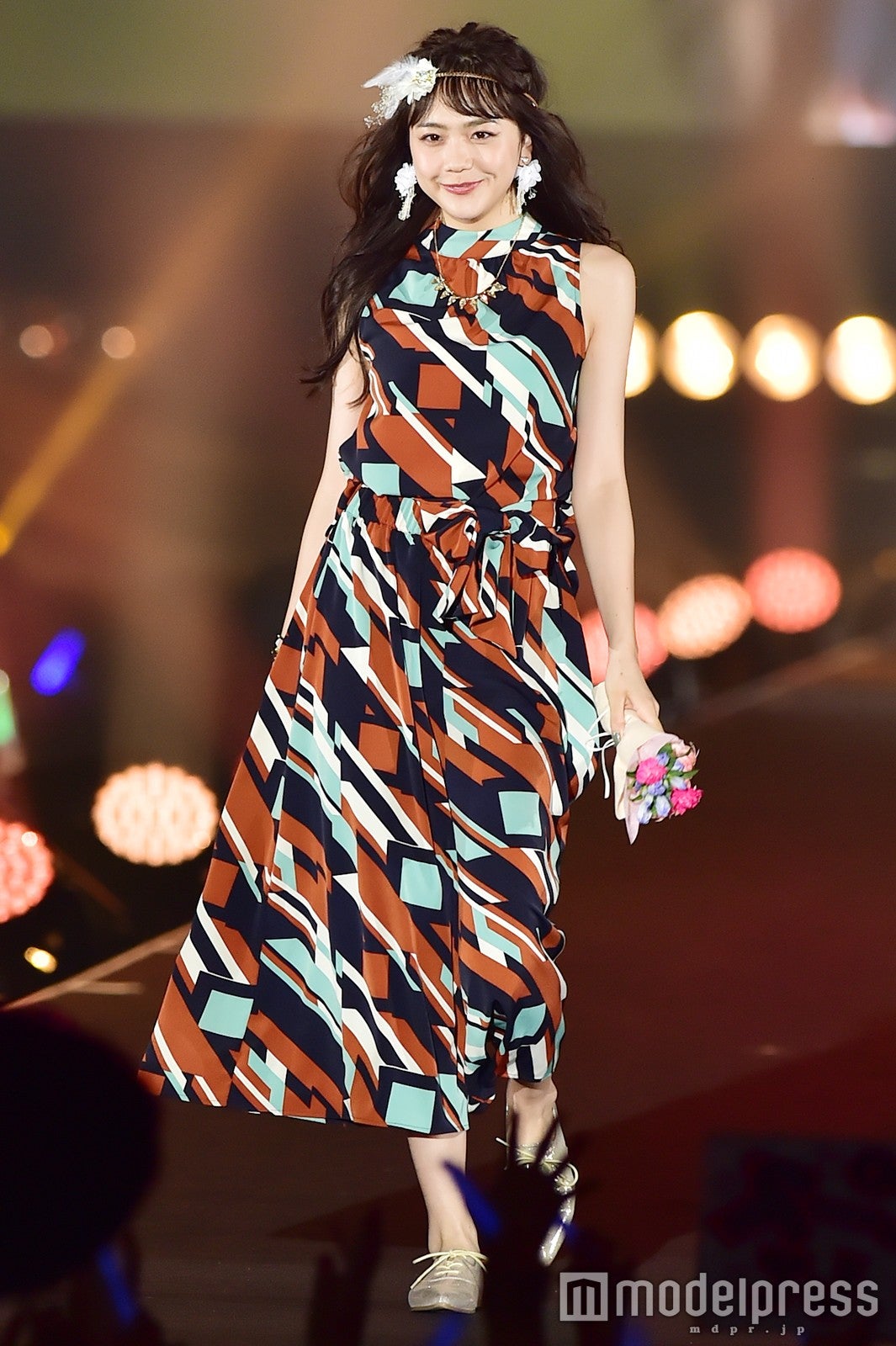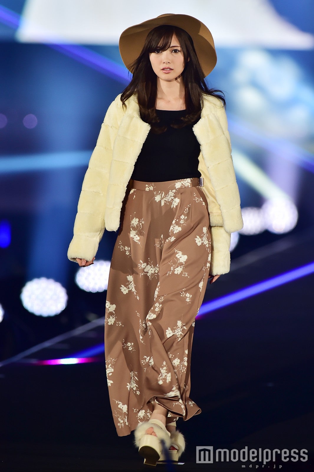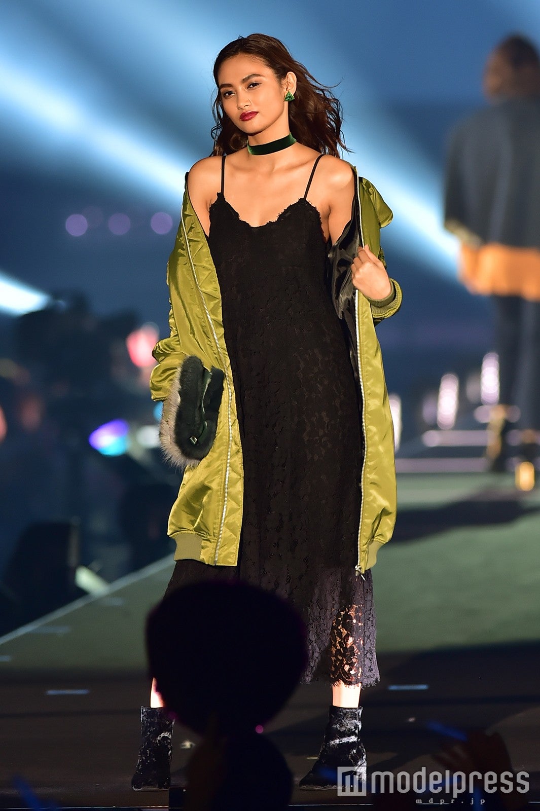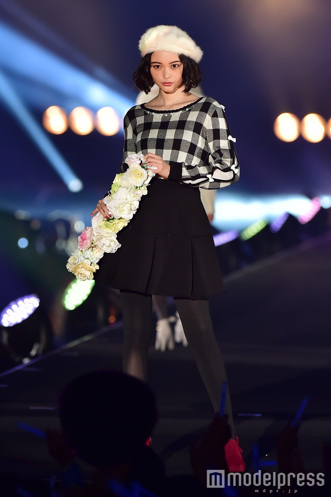 「salire」ステージのトリをつとめた新川優愛は、ミニワンピースにファーが施されたモコモコのコートを着こなし。大人可愛いフェミニンスタイルで、笑顔でランウェイを闊歩し、観客を虜にした。大政絢、スレンダー美脚に視線集中