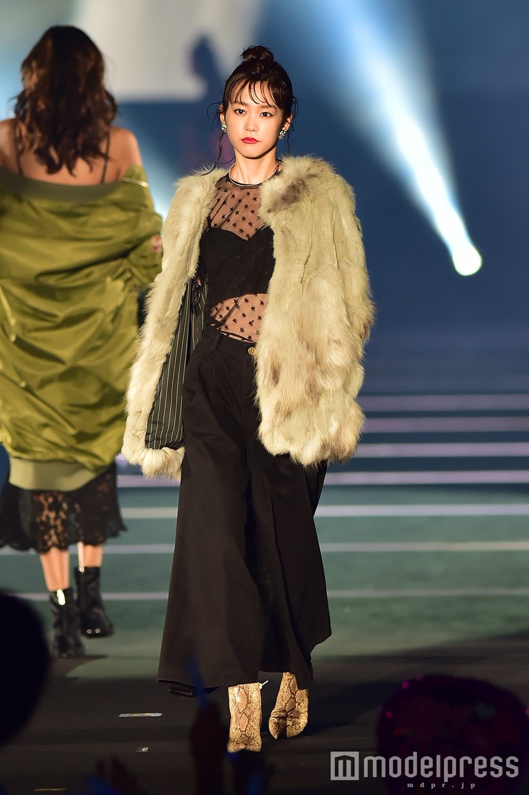 ファッションステージのラストとなる「MURUA」ステージでトリを飾った桐谷。シースルーでお腹がのぞくトップス、ワイドパンツにインパクト大なファーコートをまとって颯爽とウォーキング。会場の視線を一身に浴びながらクールな眼差しを飛ばし、セクシーなオーラを放っていた。乃木坂46白石麻衣、橋本奈々未、松村沙友理、齋藤飛鳥らがランウェイモデル出演