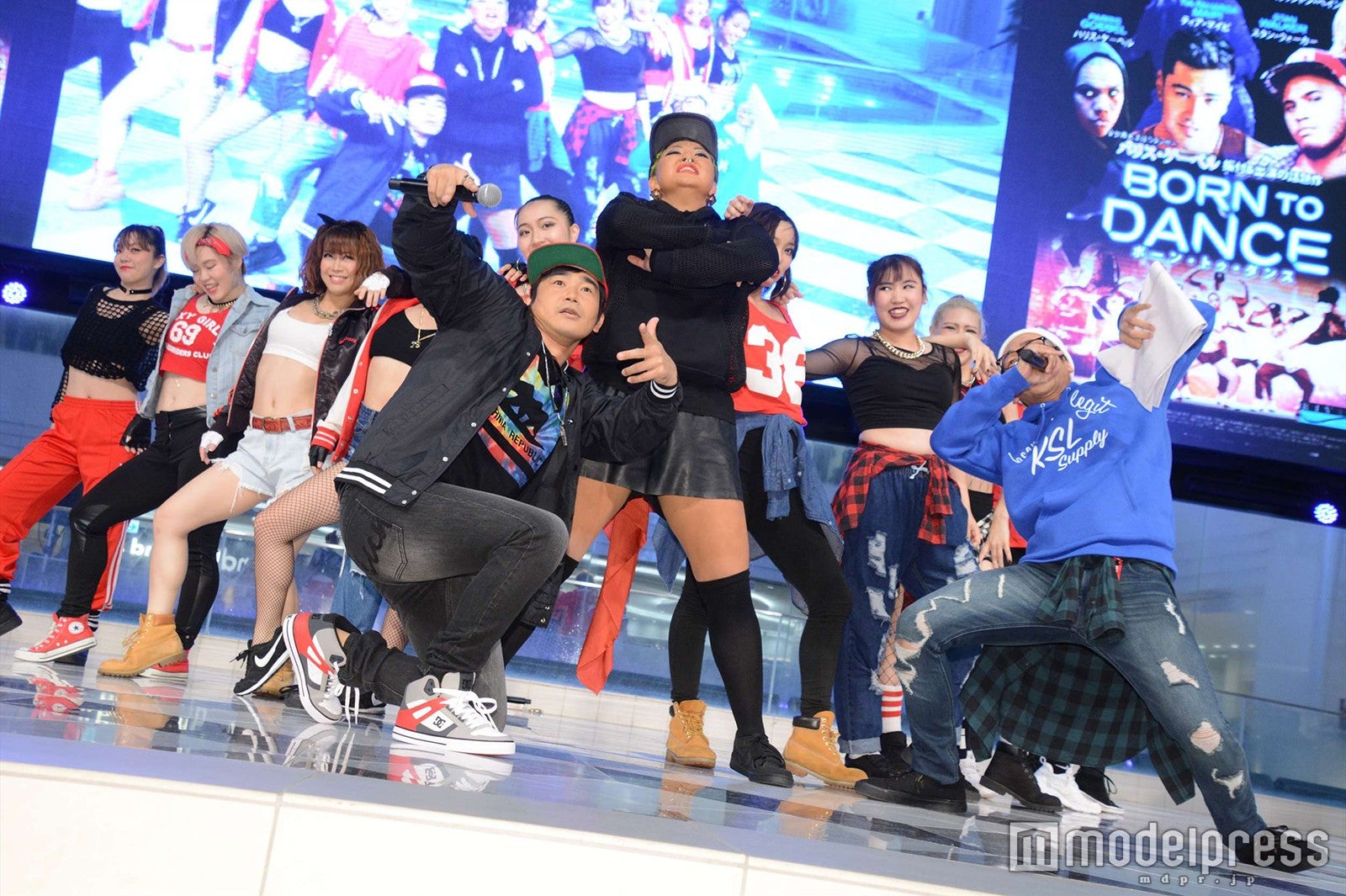 同作は、ジャスティン・ビーバーの「Sorry」MVで話題となったダンサー、パリス・ベーゲルが振付&出演し、プロのヒップホップダンサーを目指す若者たちの熱き戦いをテーマにしたダンスムービー。この日は、若手芸人コンビのかぎしっぽ(さち、れおてぃ)も登場。香港で18年間もダンサーとして活躍していた異色経歴を持つれおてぃは、パリスに扮してエイベックスのダンスチームと劇中ダンスを披露し、イベントを盛り上げた。