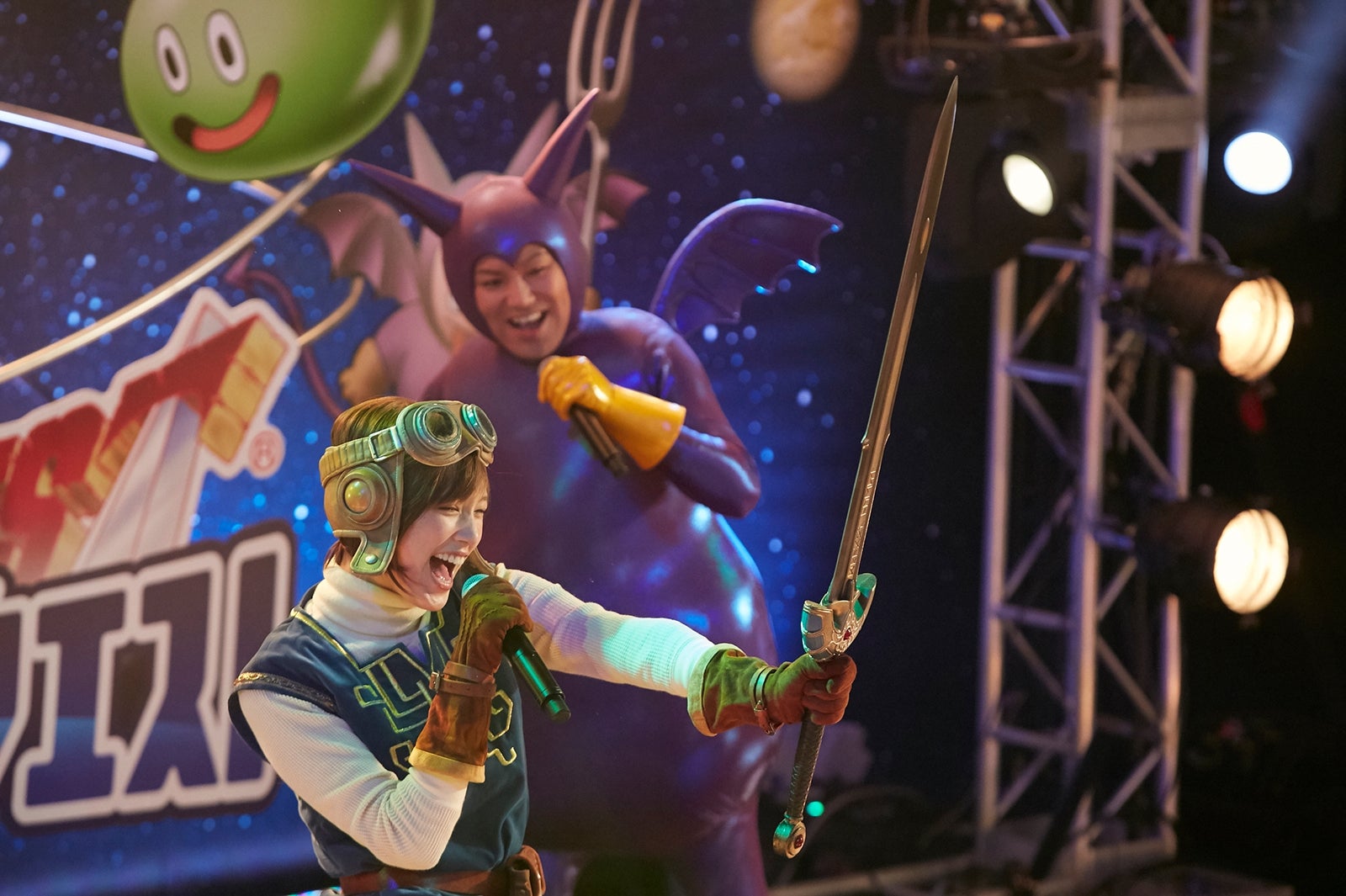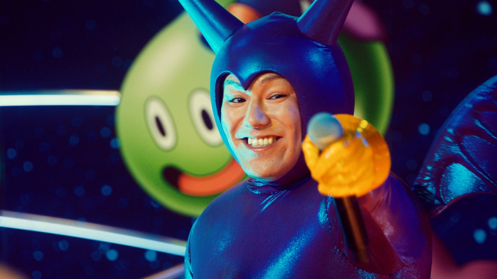 今回も、「主人公」の衣装をまとった本田と、ゲームに登場する魔物のキャラクターの衣装を着用した狩野英孝が共演。本田演じる主人公が、マイクパフォーマンスで会場を盛り上げる中、狩野も負けじと自身の持ちネタを披露したところ、会場全体が静まり返る演出など、約300名エキストラと出演者が一団となって盛り上がるCMに仕上がった。撮影中、2人はセリフを確認したり、監督と相談したりなど、終始和やかな雰囲気。休憩中には、ゲームのプロデューサー・本田・狩野の3人で熱くゲーム談義を繰り広げていた。