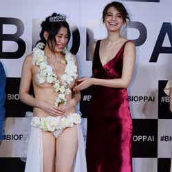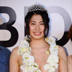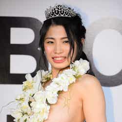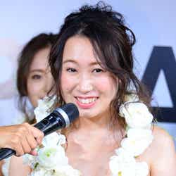 「これでもかってくらいトレーニングもいつも以上に頑張ってきたので、またこの経験を活かして違う面でも活かせるように頑張っていきたいと思います」と喜びとともに今後の活動に意気込み。美バストのために、「バストアップになる鍼をしにいったりとか…リンパマッサージをしました」と秘訣を明かした。