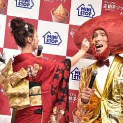 またイベントでは、「すっごい芋掘りが好きで、去年も私から誘って姪っ子と芋掘りに行きました」と意外な一面を明かしたダレノガレが、「さつまいもに扮した篠原を畑から掘る」という演出も実施。ダレノガレに引き抜かれて、登場した安納芋姿の篠原は「皆さんのシラーっとした感じ…。もうちょっとあるでしょ」と報道陣の反応に不満そうな顔をみせたものの、「ダレノガレ大使に私を掘っていただいて、こんなに安納芋冥利に尽きることはないです。すごく嬉しいです」とご満悦だった。
