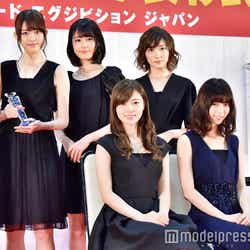 歌手部門で受賞した乃木坂46からは、ジュエリー選抜として生田絵梨花、生駒里奈、白石麻衣、西野七瀬、松村沙友理が出席。代表として挨拶をした松村は「私は幼い時からジュエリーが大好きで、母や祖母に新聞に挟まったジュエリーの広告チラシをもらってはずーっと眺めていました。それから時が経って、こうして本物のジュエリーをプレゼントしていただいて本当に感激しています。このキラキラと輝くジュエリーのように、私たち乃木坂46もずっと輝ける女性になりたいと思います」と受賞を喜んだ。