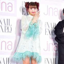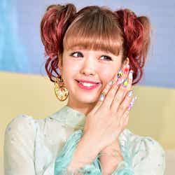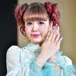 続いて、にこるんは「ありがとうございま~す、フフフ」とニッコリ。「ハッピハッピーネイル」がテーマだという本日のネイルについて、「今、ピコ太郎さん流行っているじゃないですか。なので、(ピコ太郎の『PPAP』を意識して)右手にパイナップル、左にアップルを入れました」と笑顔で語った。