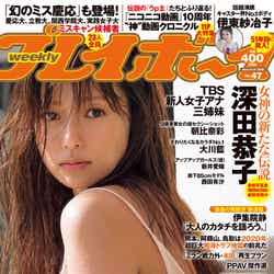 ほか、今号の表紙&巻頭グラビアは、女優の深田恭子が担当。誌面には、写真集「Reflection」(11月2日発売)から、美ボディがあらわになったSEXYなカット掲載されている。さらに、8月に同誌上に登場した際に「初登場」「初グラビア」「初水着」「初表紙」という異例のデビューを飾った新人キャスター伊東紗冶子も、センターグラビアに登場。8ページにわたって美貌をあらわにしている。(modelpress編集部)