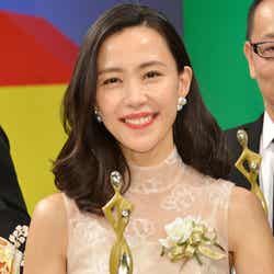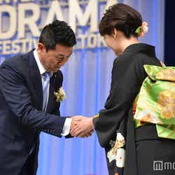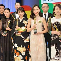 黒の艶やかな着物で登場した波瑠は、主演女優賞のトロフィーを受け取り「こうしていられることに大変感謝していますが、支えて下さる皆様への感謝も忘れず精進してまいりたいと思います」と喜びのコメント。“逆輸入俳優”として「あさが来た」に出演し、一躍注目の的となったディーンは「人生のターニングポイントになった作品。ありがたいアワードをいただいてとても感謝しています」とにっこり。“ヤバ妻”を好演し話題を呼んだ木村は「20年前にテレビドラマでデビューしたこと、そしてホラーやサスペンスが大好きなのでこうして受賞できて本当に嬉しいです!」とチャーミングな笑顔を見せた。