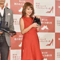 受賞について鈴木は「靴がめっちゃ大好きなので、この賞をいただけて幸せです。今年で一番幸せです。マジで!」とニッコリ。この日、お披露目された自身がデザインした靴については「28歳にもなってもっと色気のあるいい女になりたいので、シックにしました」と話し、どういう女性をイメージしてデザインしたか聞かれると「旦那さんに愛される女性になれるように、旦那さんのことを考えました」とお惚気。さらに、これからその靴を見せるそうで「(靴を見せたら)たぶん、抱いてくれるかな(笑)。興奮してくれると思います。私の旦那さんは革が好きなので、足を嗅ぎにくると思います」とコメントして報道陣を沸かせた。また、夫と交際中に靴をプレゼントされた思い出があるそうで「赤い靴を誕生日にプレゼントしてくれました。一緒に渋谷に行って買いに行ったことが思い出ですね」と回顧し、その靴を履いた際に「すごくキレイだねって惚れてくれました」と紹介。