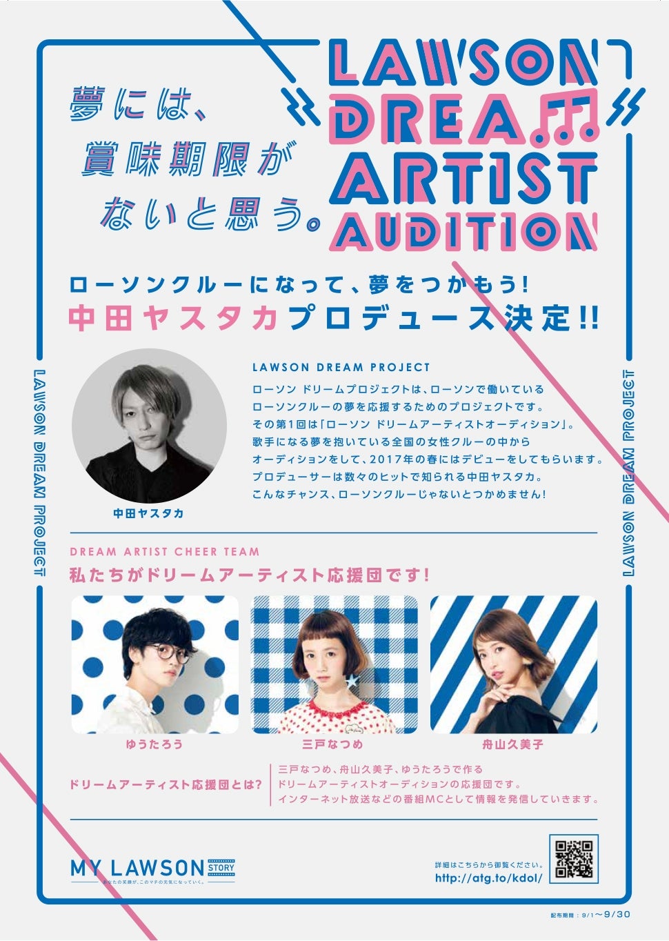 全国のローソン店舗で働く約17万人のクルーの夢を応援するプロジェクト「LAWSON DREAM PROJECT」が2016年9月1日に始動。今回はその第1弾として「ローソン ドリームアーティストオーディション」の募集を9月より開始している。