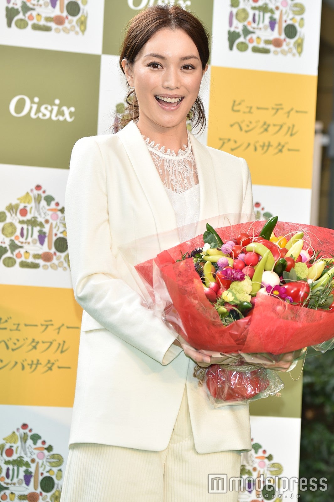 モデルの蛯原友里が12日、都内で行われた「ビューティーベジタブルアンバサダー」就任イベントに出席した。