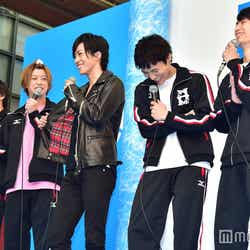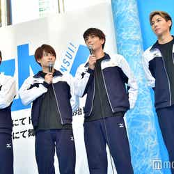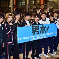 日本テレビが地上波ドラマ及び舞台化の連動で行う『男水!(読み:ダンスイ)』のプロジェクト壮行会イベントが13日、 日テレタワー大屋根広場で行われ、松田凌、宮崎秋人、安西慎太郎らメインキャスト9人が出席。会場には抽選で選ばれた1500人のファンが集結した。