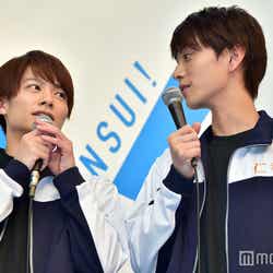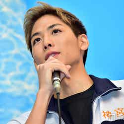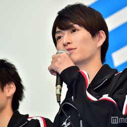 この日登壇した松田、宮崎、安西をはじめ赤澤燈、佐藤永典、小澤廉、黒羽麻璃央、池岡亮介、廣瀬智紀ら9人は、物語でライバル関係となる「都立 東ヶ丘高校」と「私立 龍峰高校」の水泳部メンバー。部員不足で同好会落ちの危機に立たされた東ヶ丘高校と、インターハイ常連校の龍峰高校、それぞれの個性が現れた特注のジャージもこの日お披露目となった。「本当に魅力的な主役級のキャラクターがたくさんいるので、みなさんは色々な目線で、群像劇として見ていただければと思います」と松田。中でも東ヶ丘高校のマネージャー、小金井晴美は“紅一点”のおネエキャラとなり、演じる赤澤は「清く、正しく、おネエです!」とアピール。おネエキャラの役作りに誰を参考にしているかとの問いには「それはまだ伏せておきます(笑)。色んな方のいい部分を学びたい」としたが、松田から即席で“おネエジャー”との肩書が与えられ、会場は大きな盛り上がりを見せた。