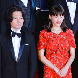 V6の岡田准一が14日、都内で行われた主演映画「海賊とよばれた男」(12月10日公開)の完成記念イベントに共演者の綾瀬はるからと出席。野外で行われた同イベントでは、岡田ら豪華キャストがレッドカーペットを歩き、ファンと交流した。
