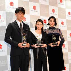 同じく女性部門で受賞した三吉は、20歳の誕生日を機にトレードマークだったロングヘアをばっさりカットし、大人びたボブヘアにイメージチェンジを遂げ話題を呼んだ。「大変ビックリしております」と驚きを見せながら、「20歳でイメージを一新したいということで髪の毛を40cm切ったので、とても良いタイミングで素晴らしい賞をいただけたことを嬉しく思っています」と笑顔でスピーチ。