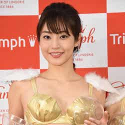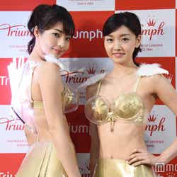 トリンプ・インターナショナル・ジャパンは16日、都内で会見を行い、最新作の「ファーストウーマンブラ」(非売品)を発表。同社の2017年イメージガールを務める松山亜耶と静麻波が着用し、お披露目した。