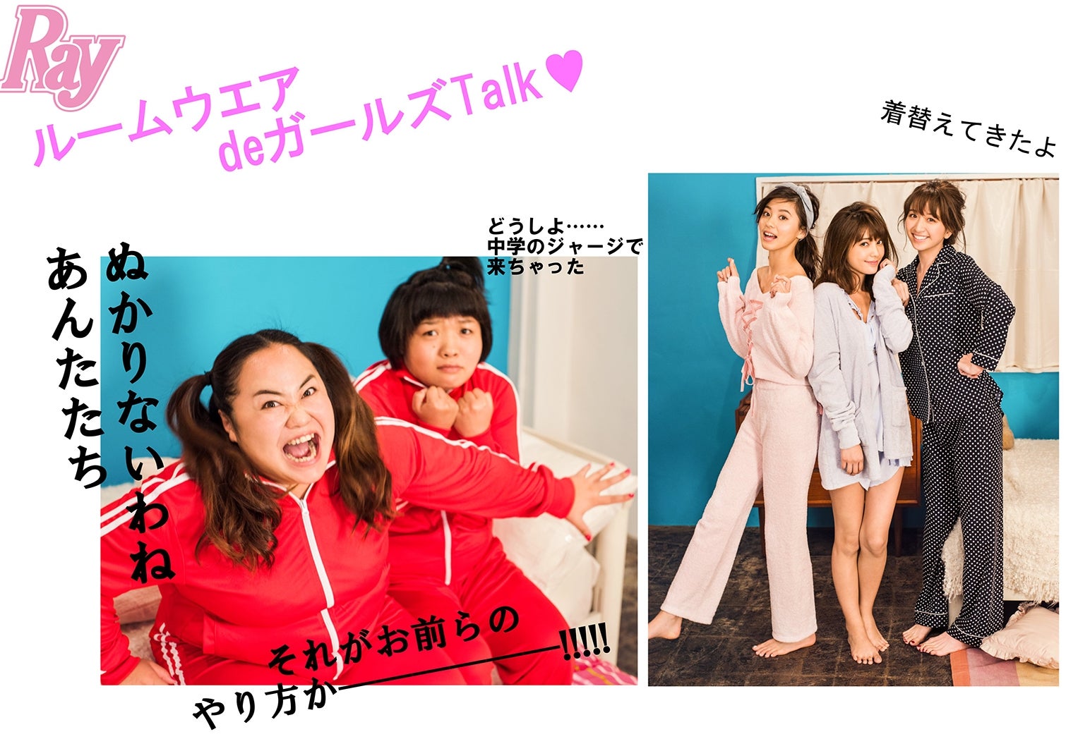 表紙連動の「まいやん&愛莉&愛理のハッピーGirl’s Party」企画のテーマは、クリスマス女子会。実際にパーティーを開いているかのようにテンション高めだったという撮影現場の様子が伝わるパーティーシーンのほか、ひとつのブランケットをシェアして寝転がるカットやおしゃれなバスタイムカットまで、さまざまな3ショットを披露。