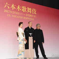 同作は、市川、中村獅童、宮藤官九郎、三池氏の強力タッグで実現した演目「地球投五郎宇宙荒事」から始まった「六本木歌舞伎」の第2弾。盲目の侠客である座頭の市が驚異的な抜刀術で悪人を成敗する時代劇「座頭市」を、市川の眼力を封印し、リリー・フランキー(脚本)が新解釈で描き出し、鬼才・三池が色づけした新作歌舞伎。市川と寺島との22年ぶりのタッグも見どころだ。盲目の役に奮闘明かす